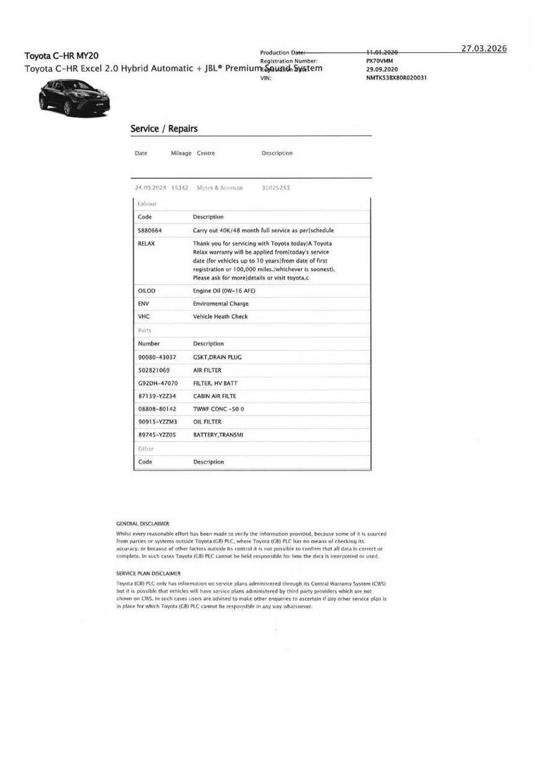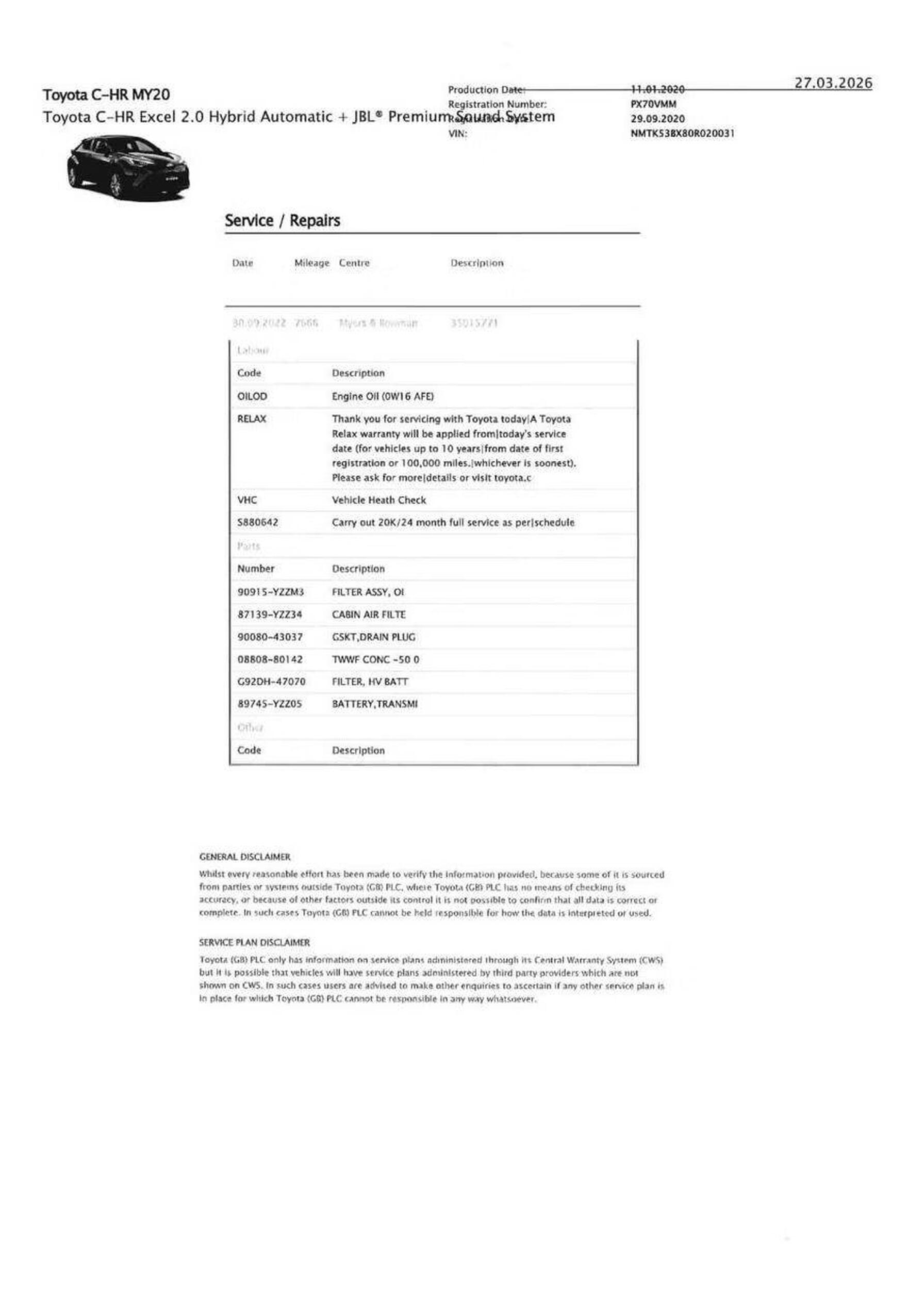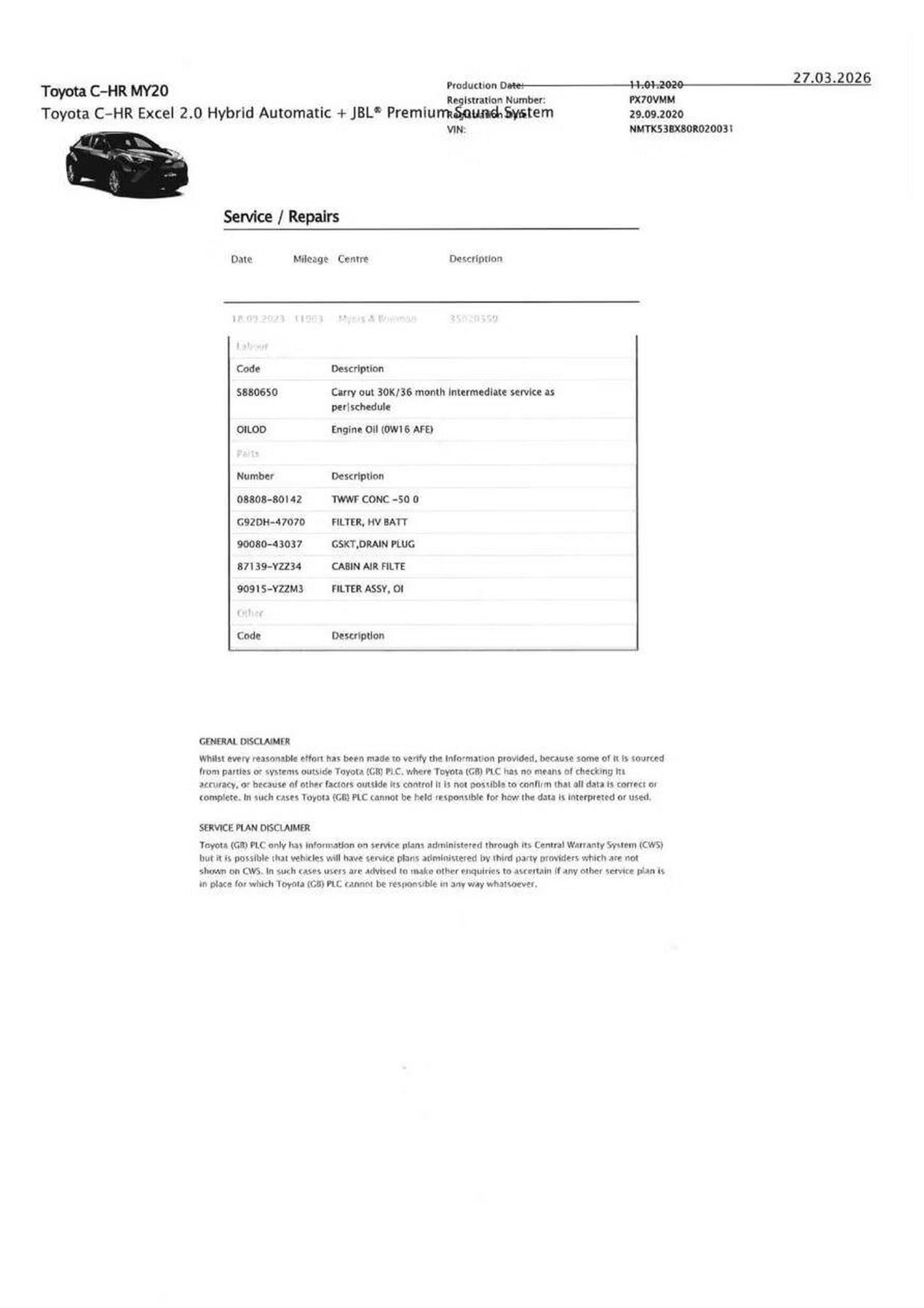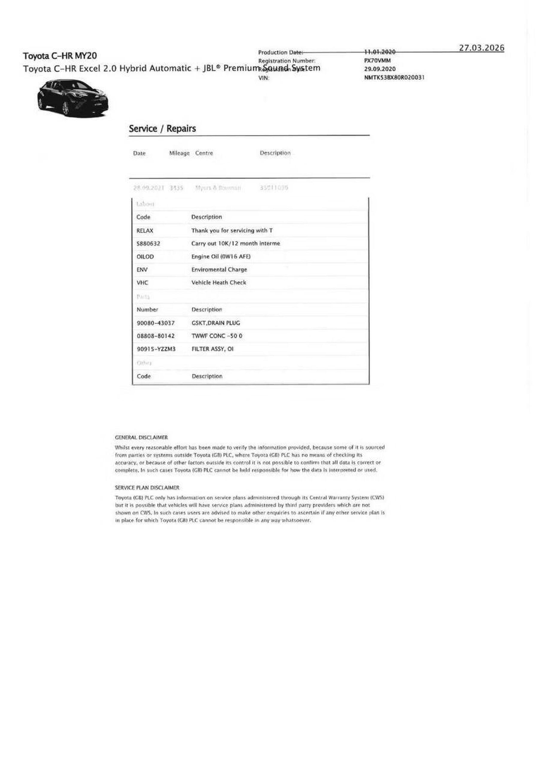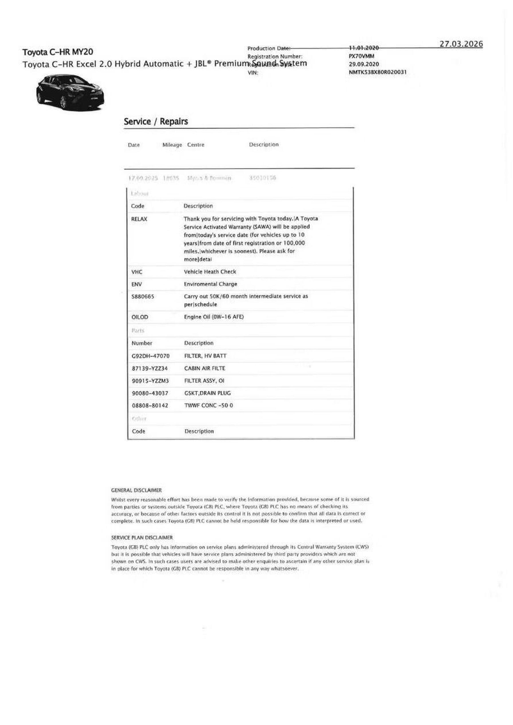 · Service history (where available)