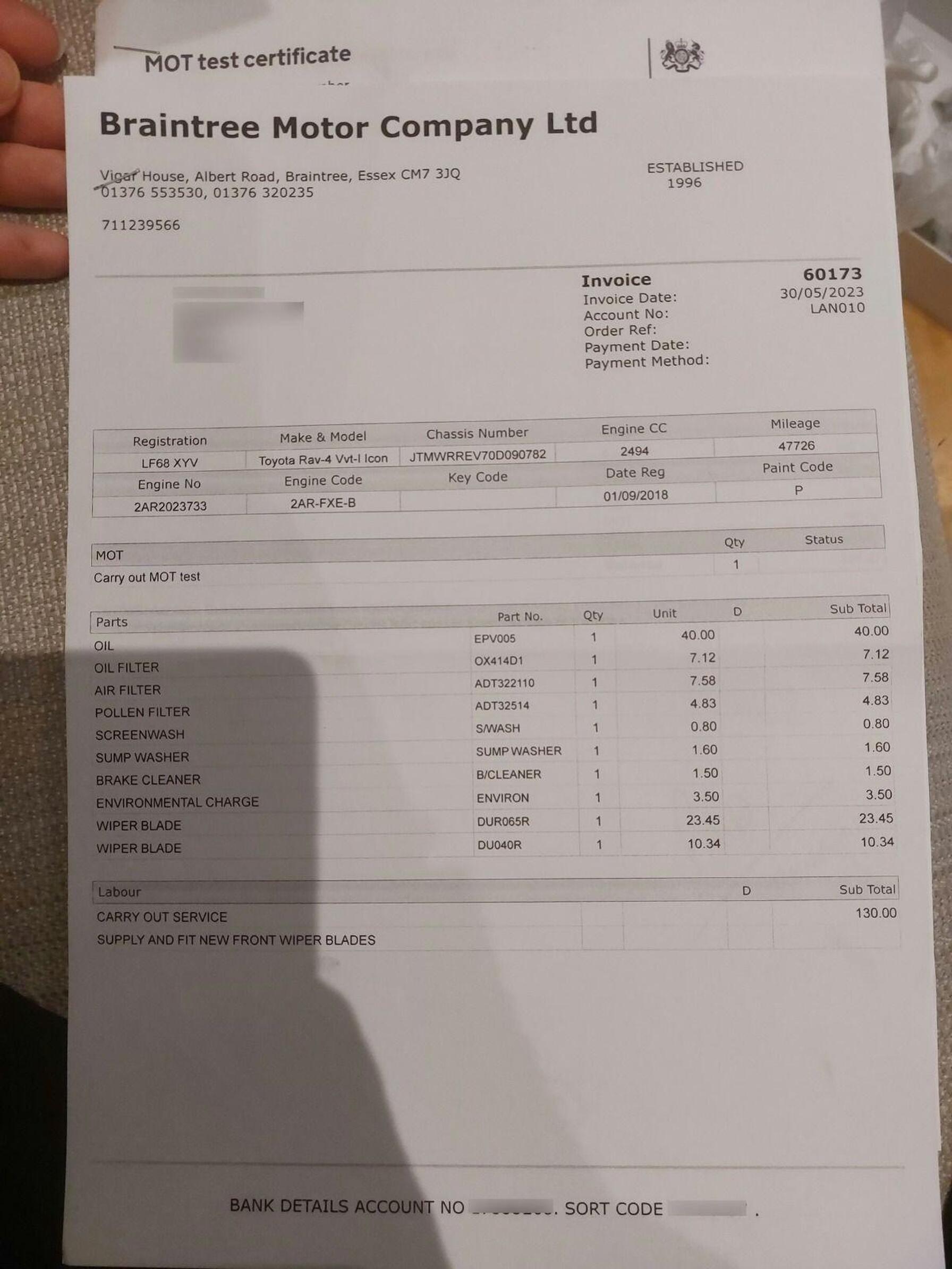 · Test drive + inspection