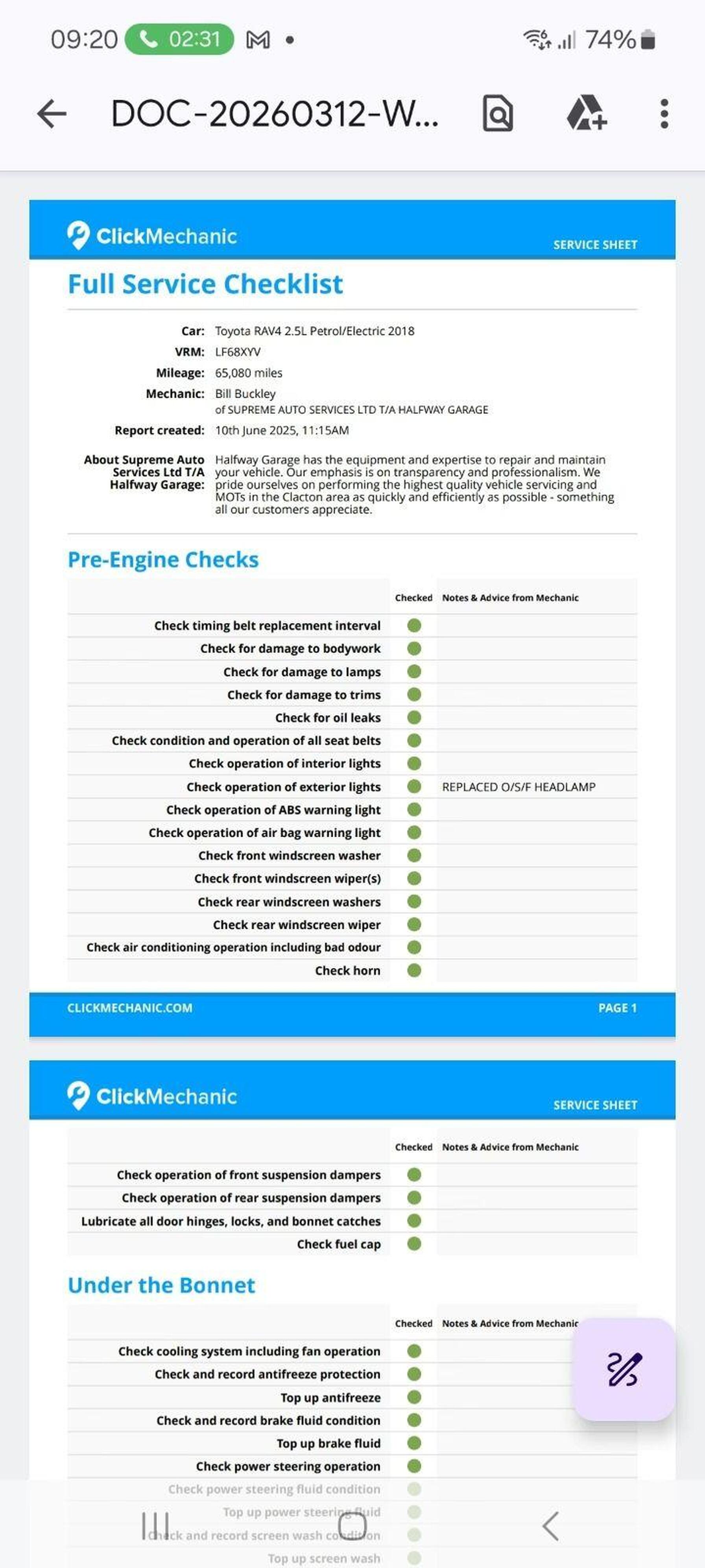 · Full mechanical checks