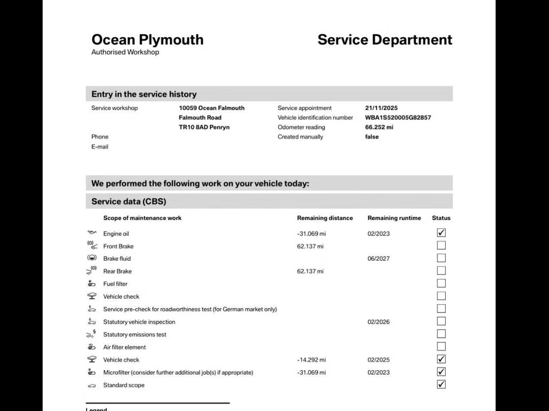 · Service history (where available)