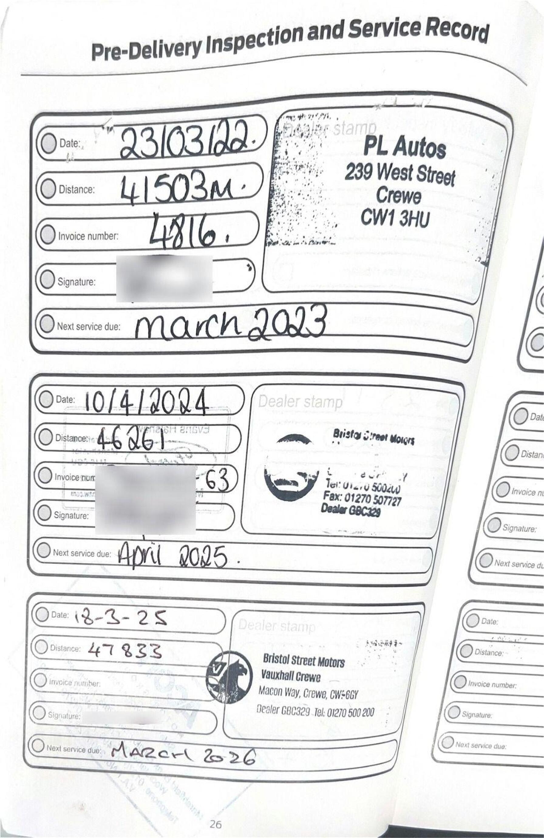 · Service history (where available)