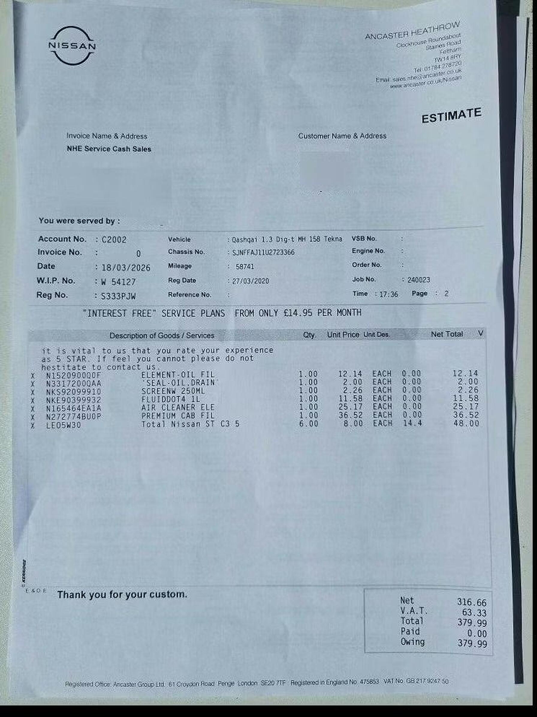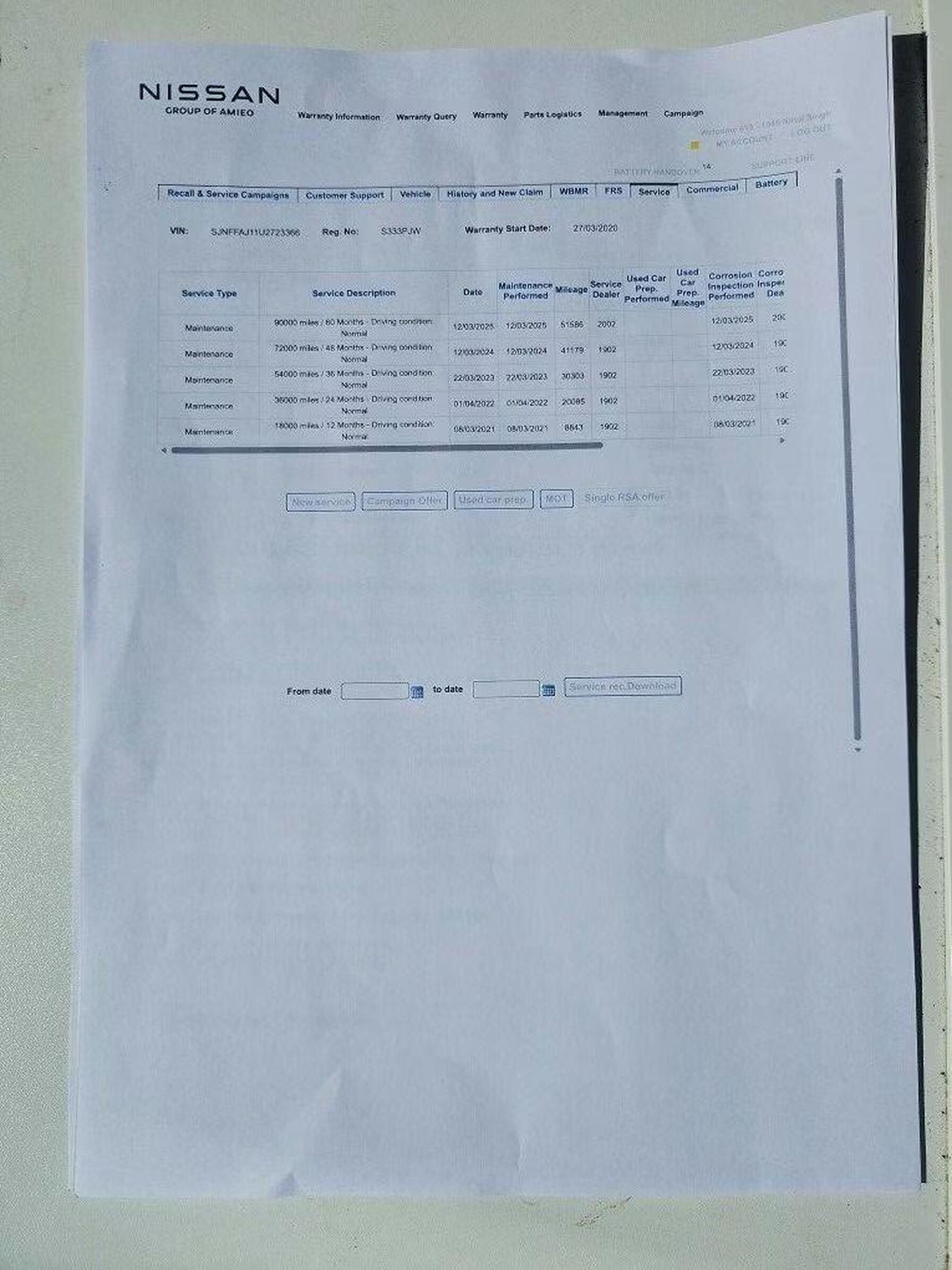 · Service history (where available)