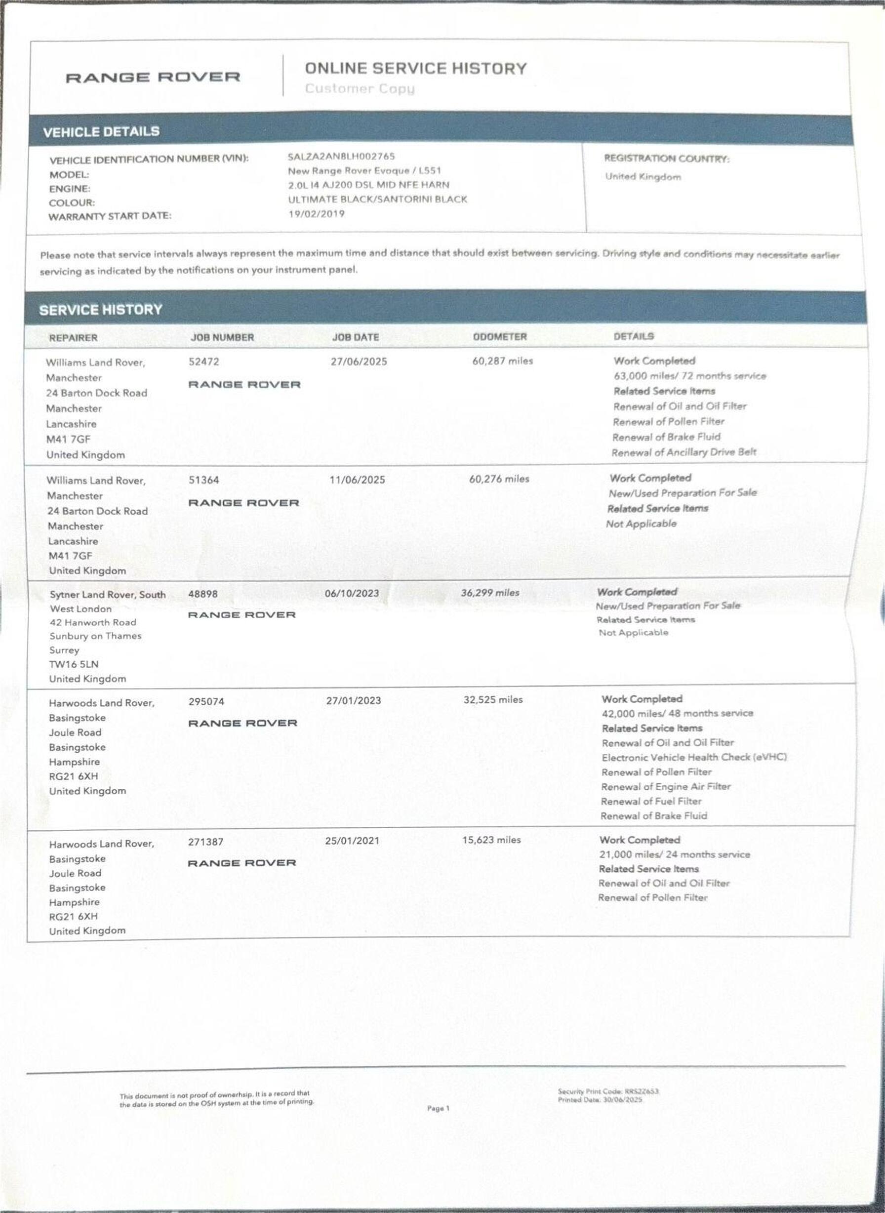 · Service history (where available)