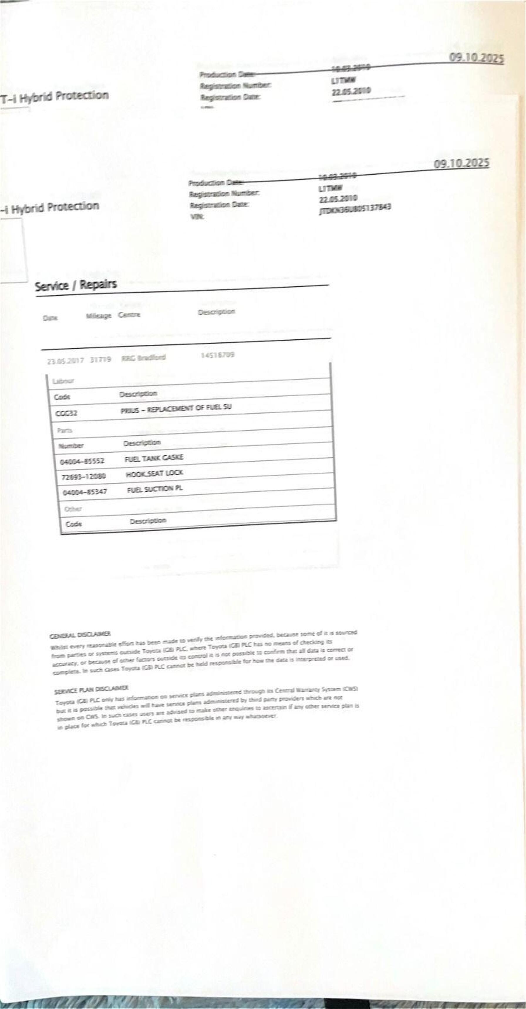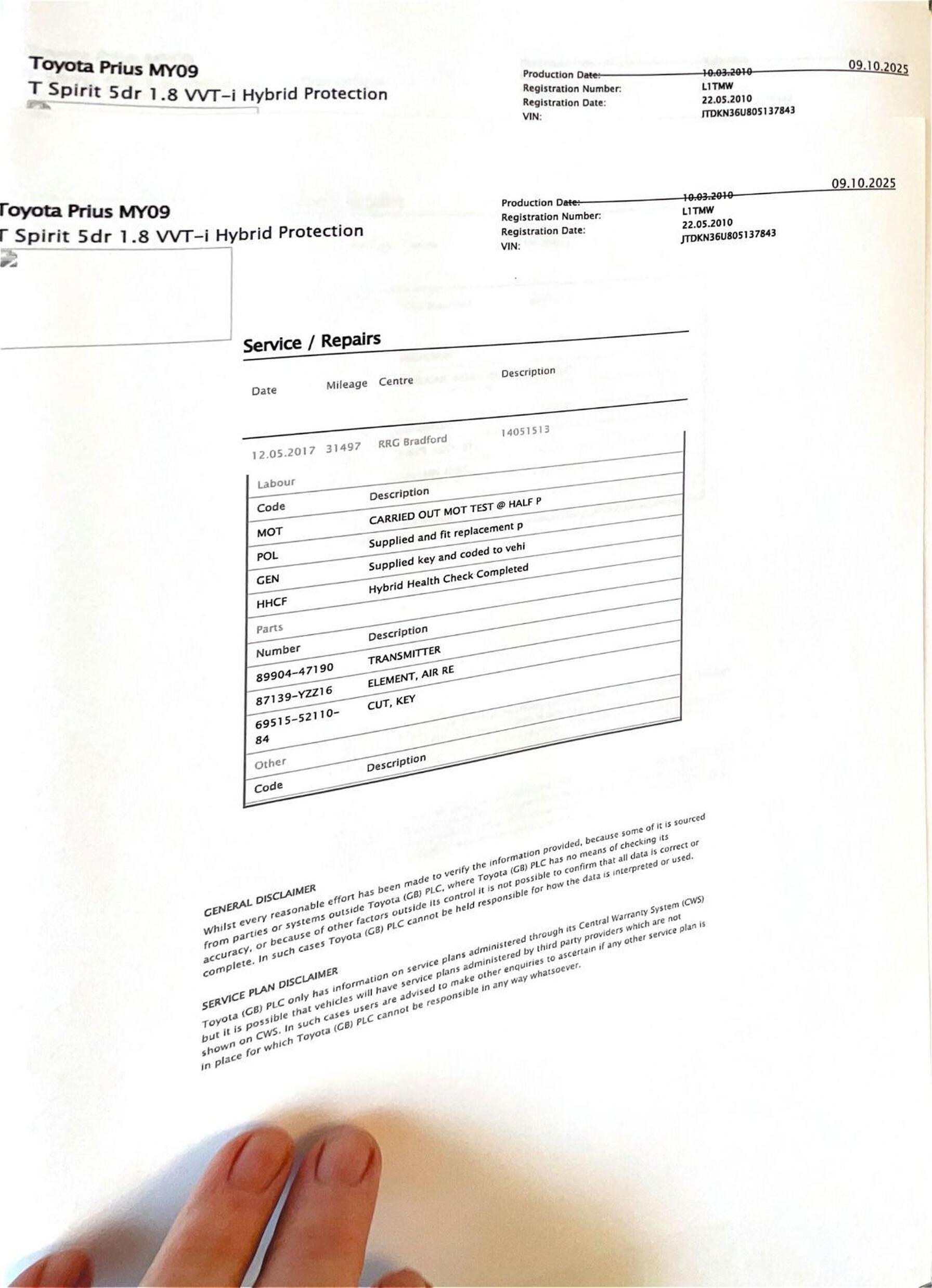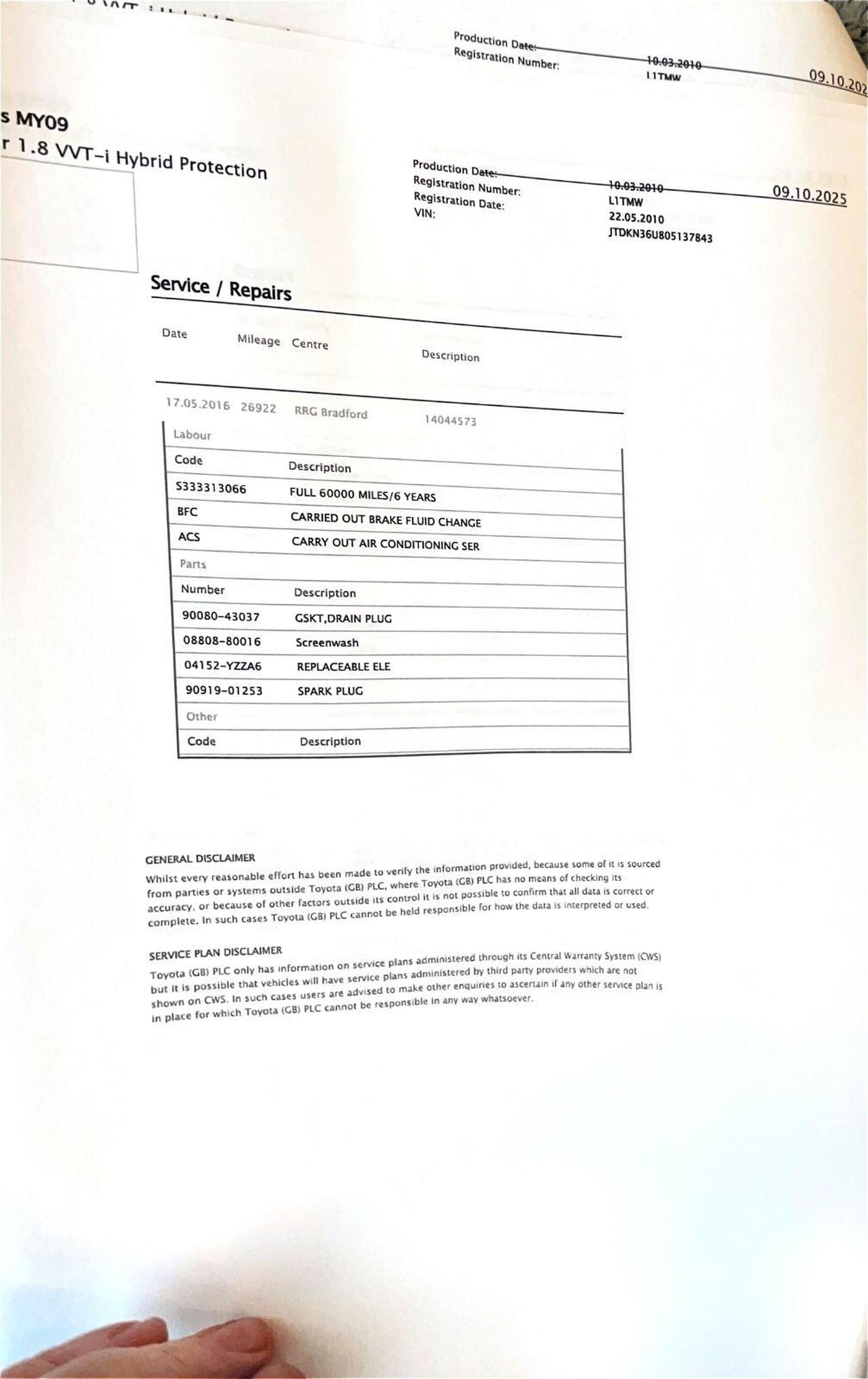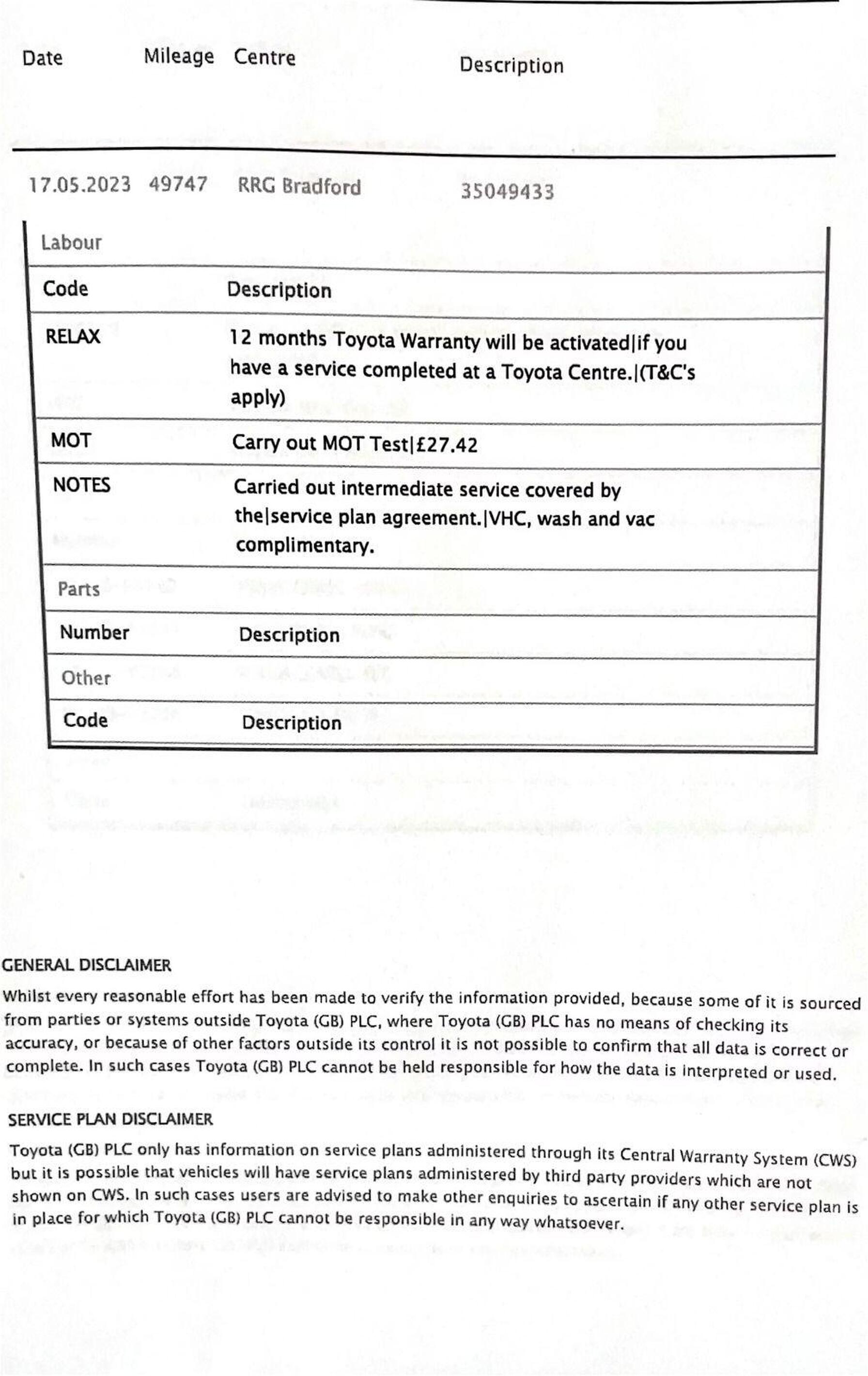 · Service history (where available)
