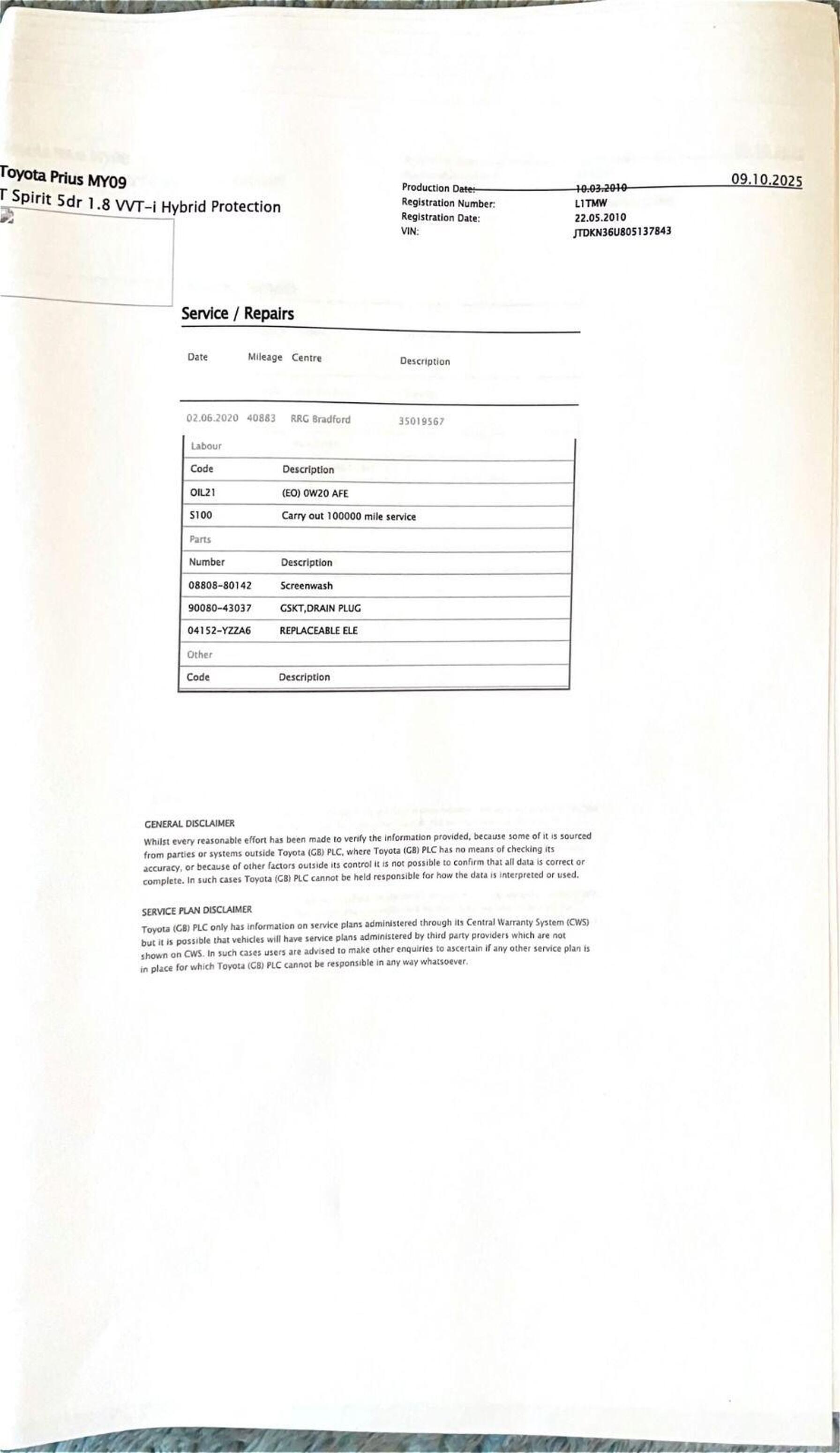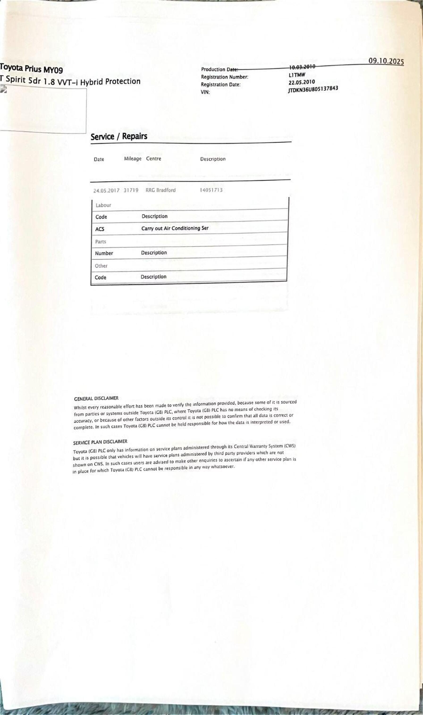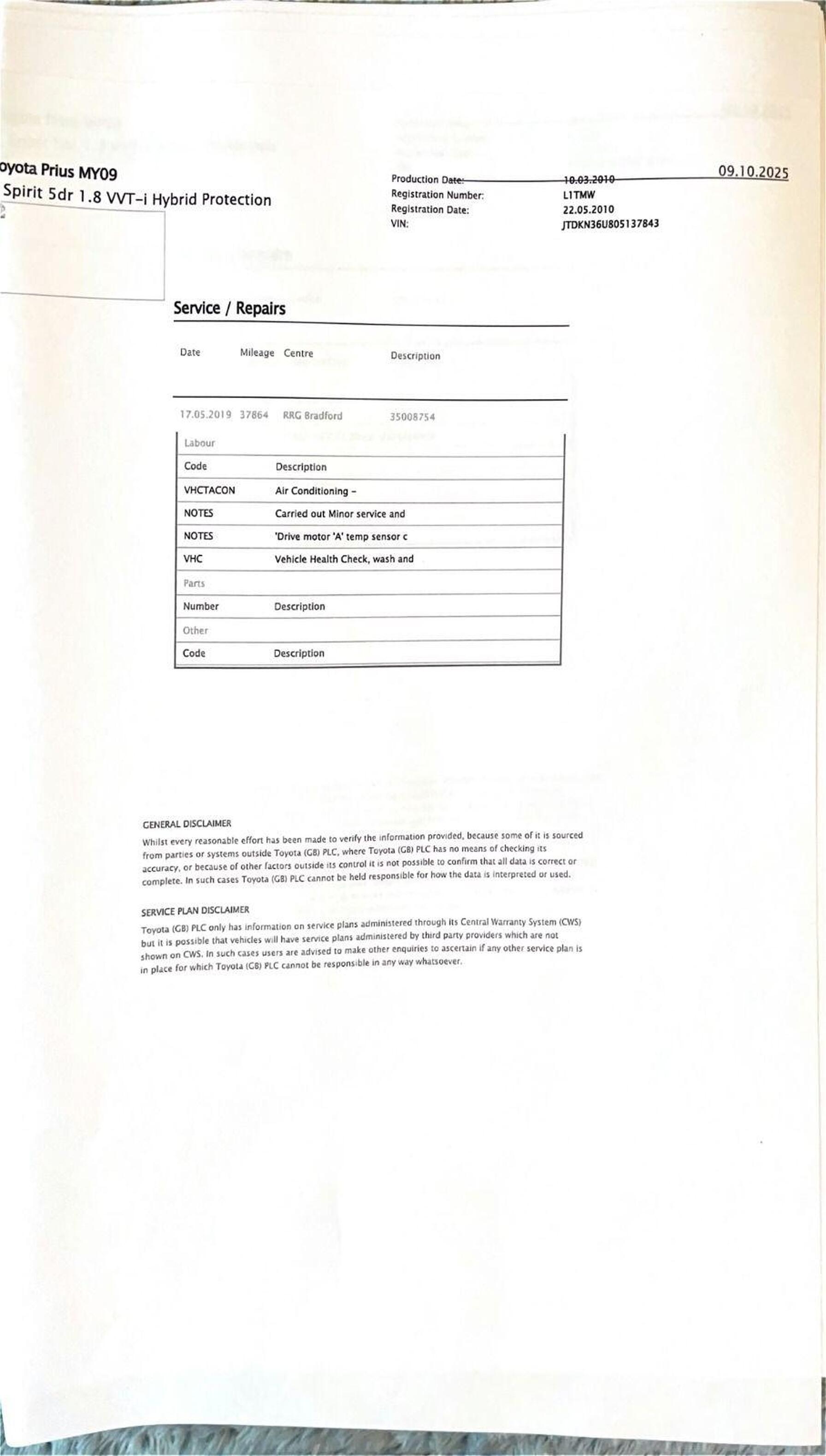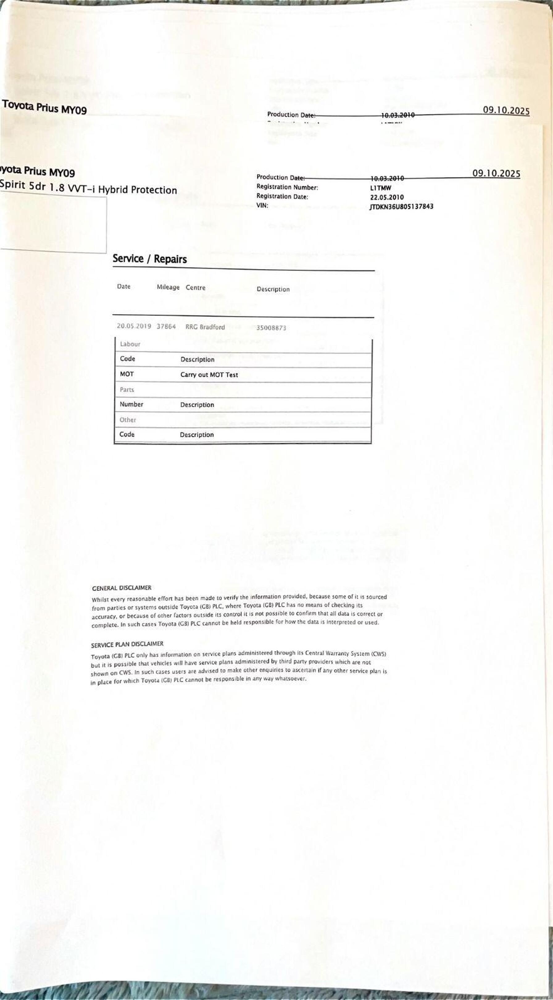 · Service history (where available)