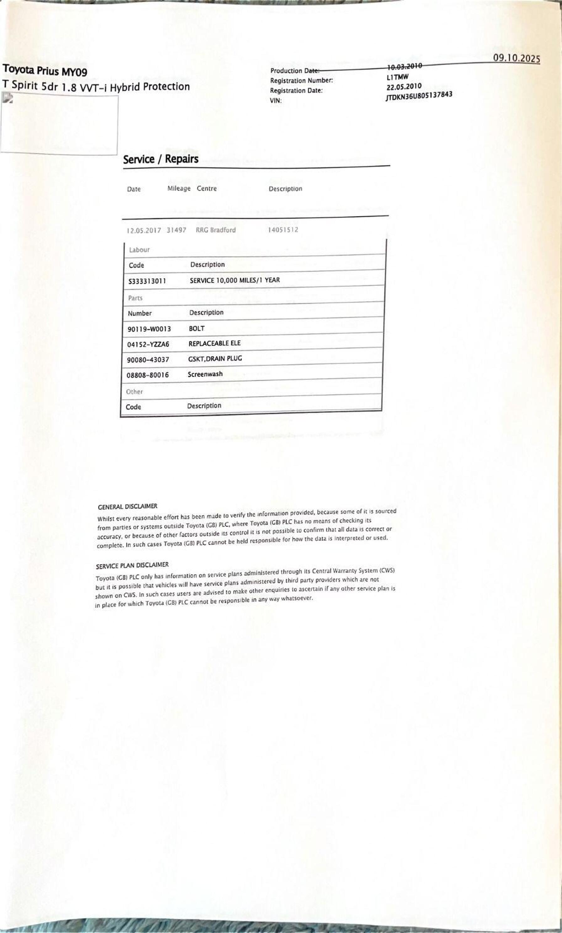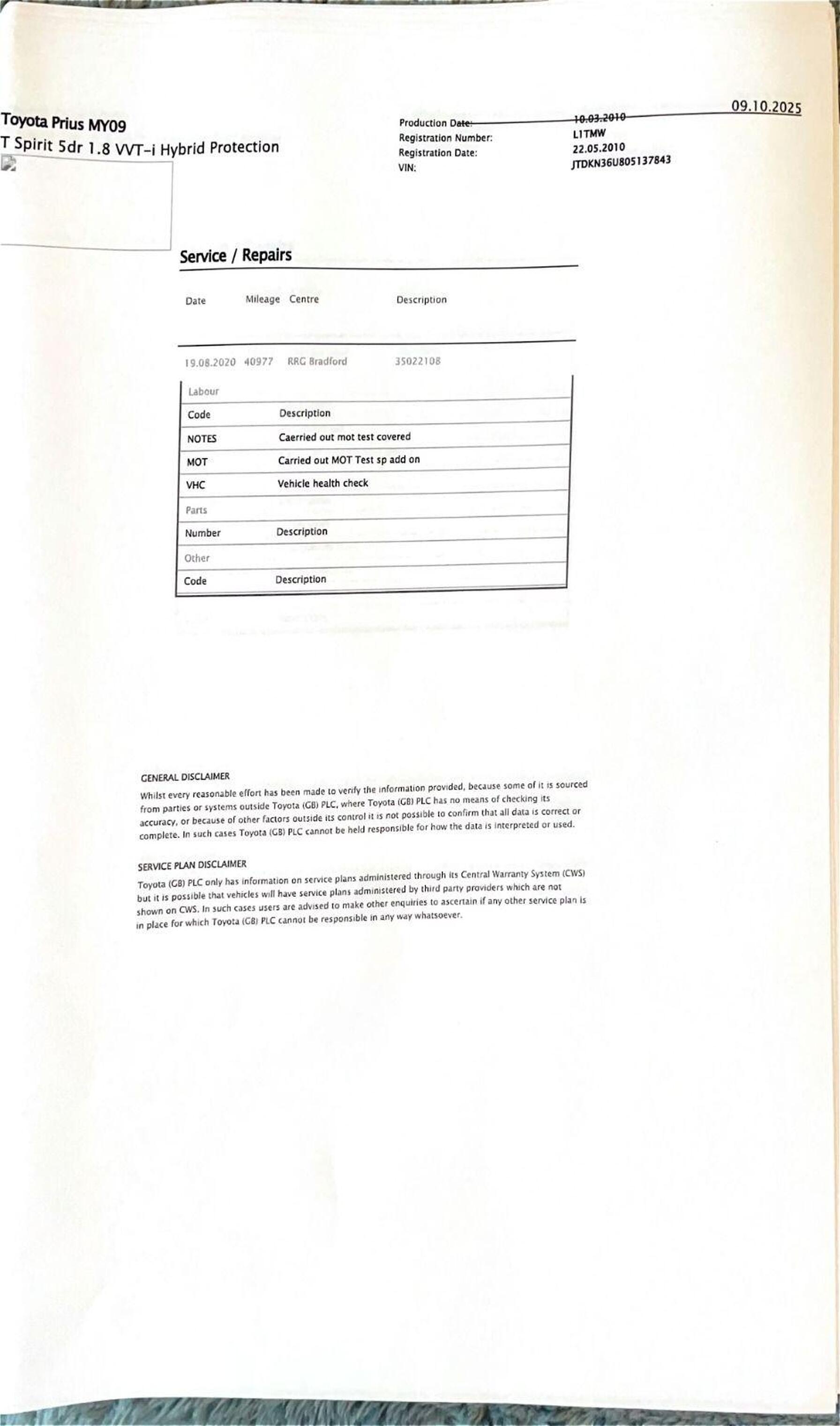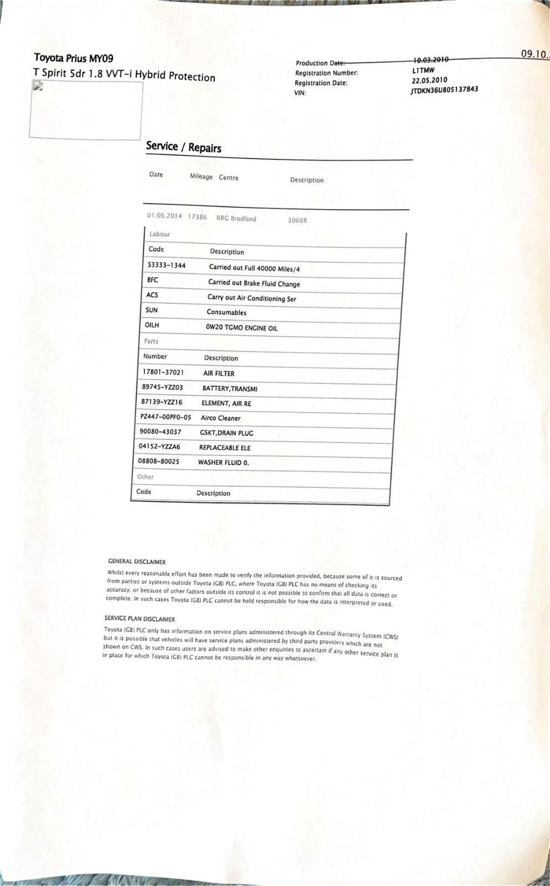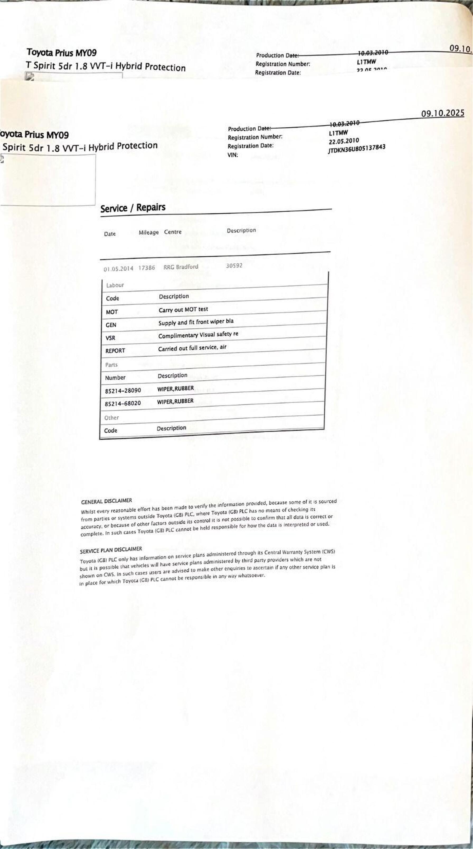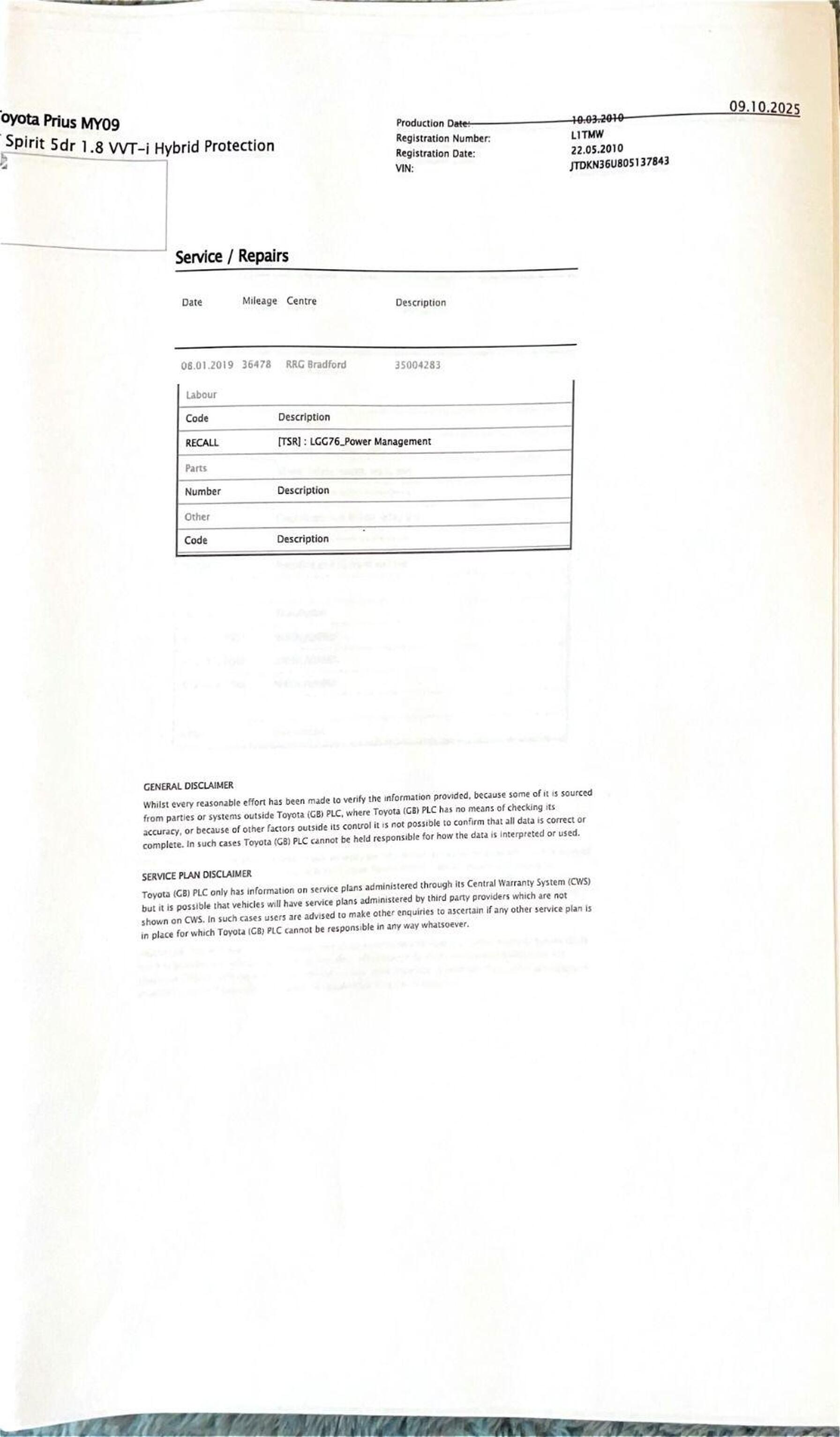 · Service history (where available)