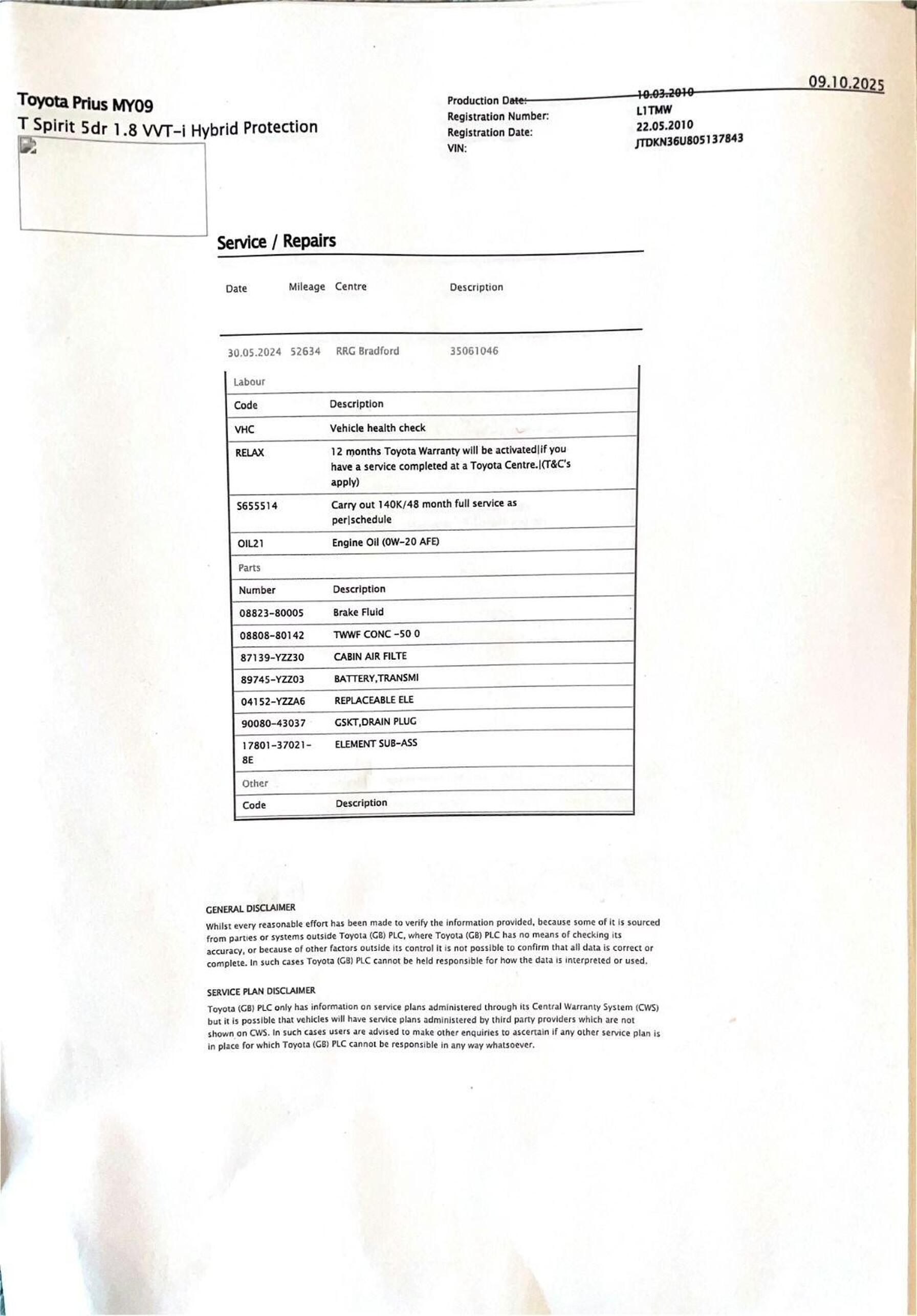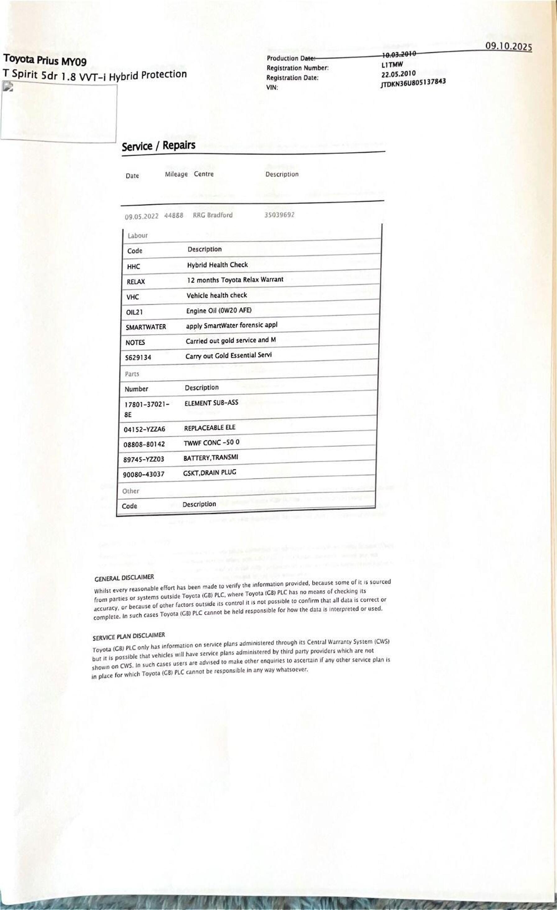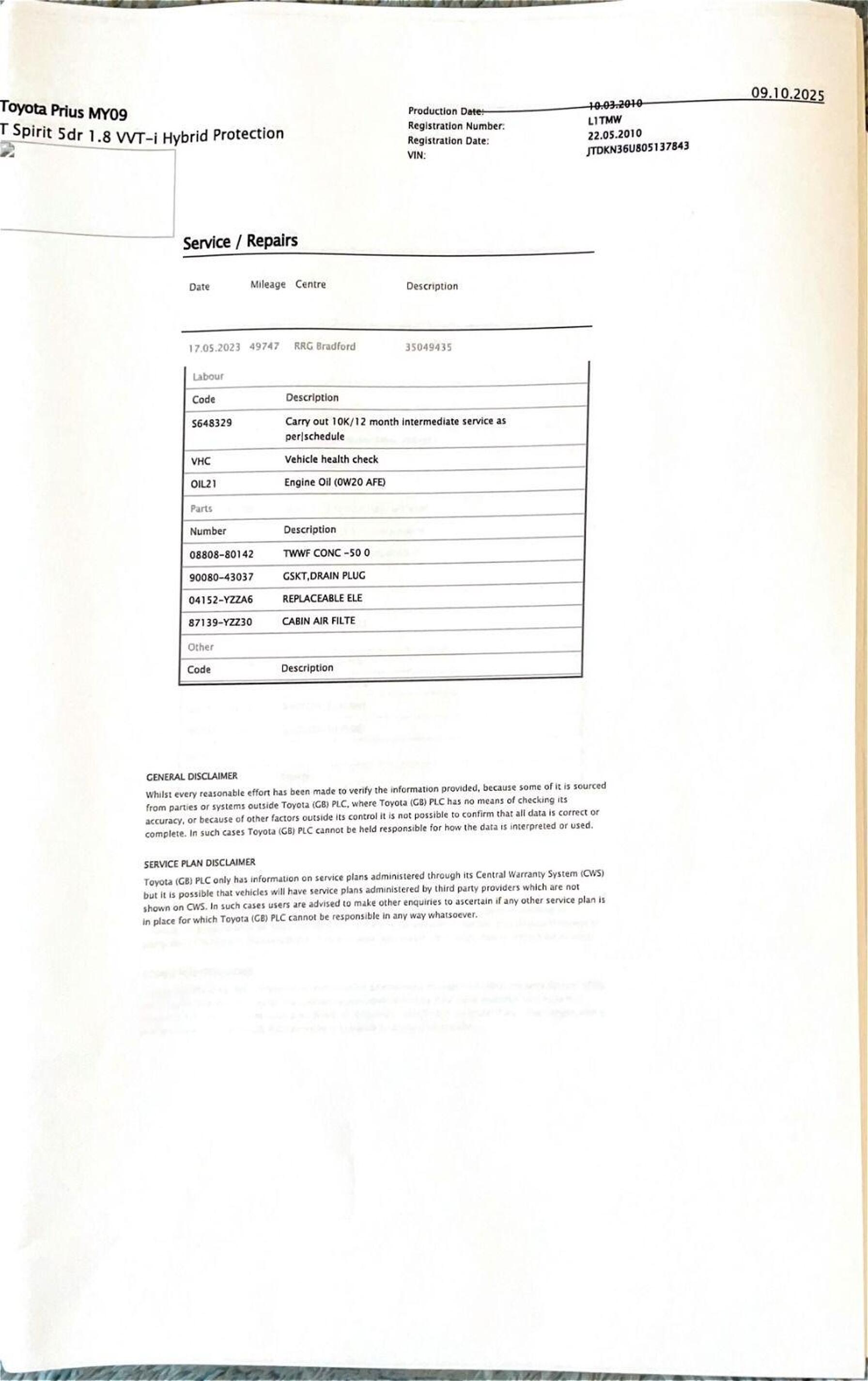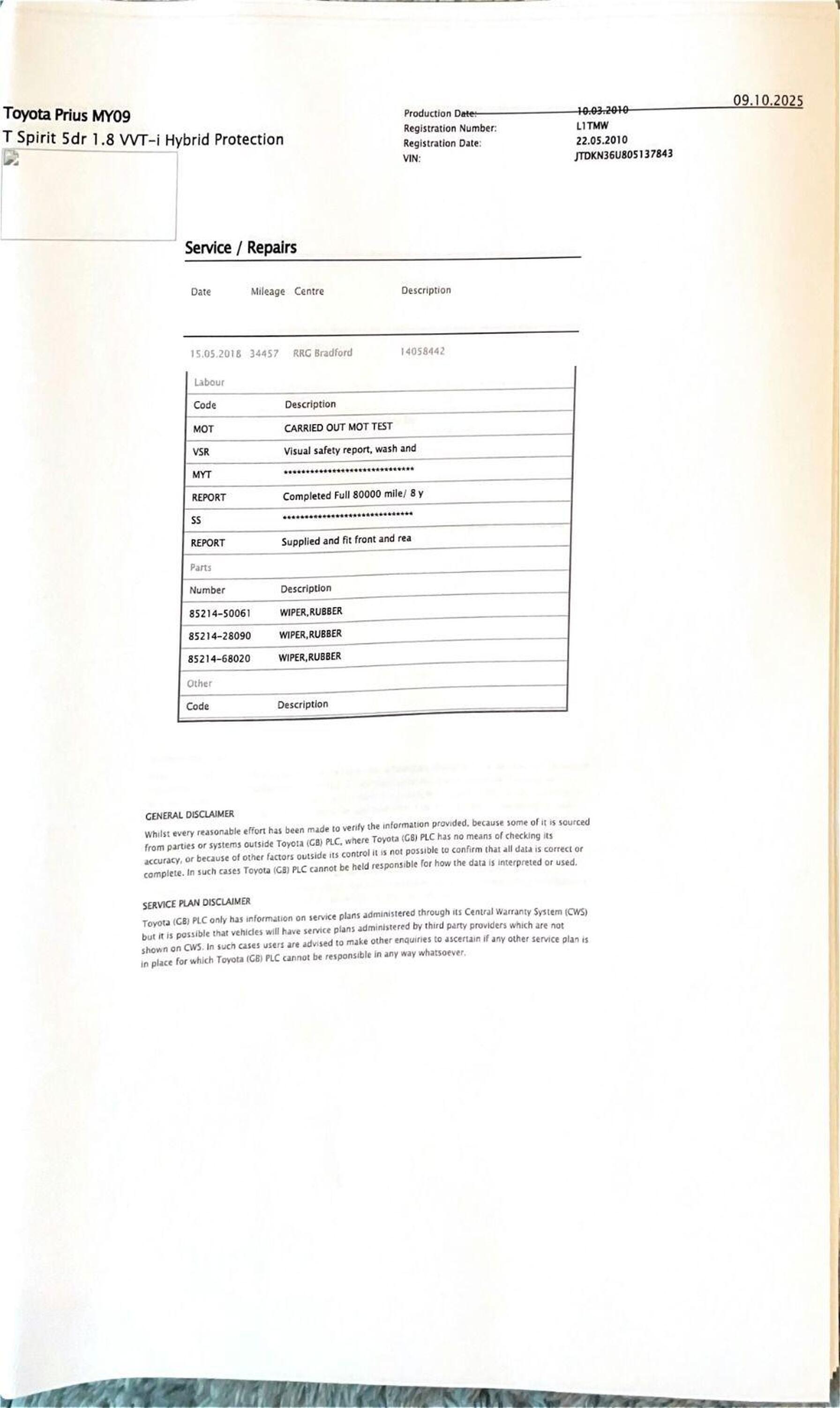 · Service history (where available)